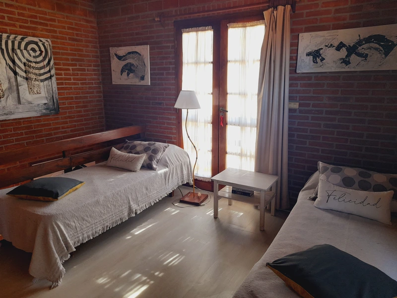 En Planta baja cuenta con Toilette, living comedor, TV Smart, cocina equipada con heladera con frezzer, cocina con horno, horno microondas, cafetera eléctrica y tostadora eléctrica. Vajilla y utensillos para 4 personas. En planta alta 1 dormitorio matrimonial con vestidor y baño completo en suite y un dormitorio con dos camas de una plaza. La propiedad cuenta con wifi, termotanque y gas natural. Hay un patio con parrilla y muebles de jardín.