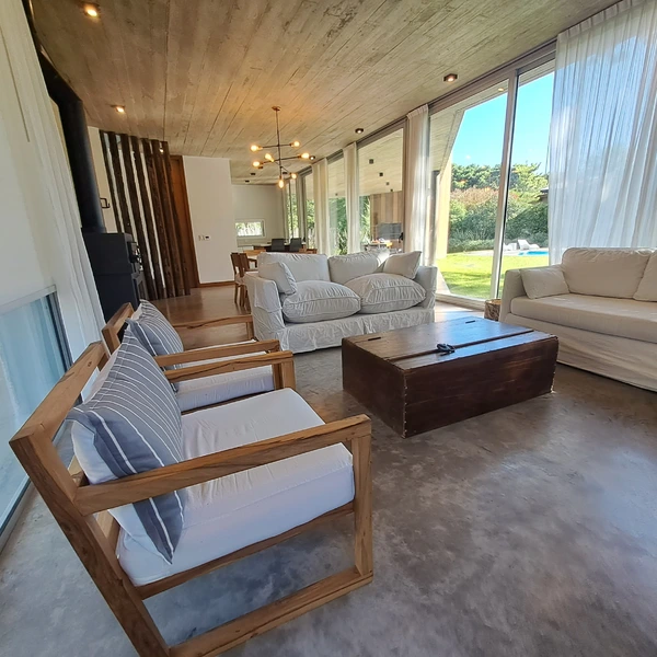 Moderna casa de 2 plantas con 3 dormitorios jardin y piscina. Parrilla con galeria cubierta y fogonero al aire libre para disfrutar por la noche.