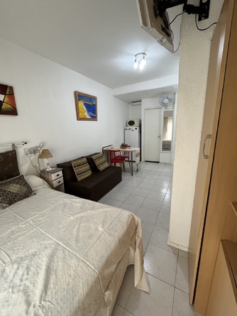 . Monoambiente 2° piso por ascensor, a poco mas de 30 metros del mar y 4 cuadras de Bunge. Muy luminoso con balcón –contrafrente- Mesa, 4 sillas, cama de dos plazas r-colchón sonmier-; sofá cama de dos plazas; kitchenet con anafe eléctrico, horno eléctrico y horno a microonda; cafetera eléctrica, licuadrora, exprimidor eléctrico; estufa eléctrica; Led con DirecTV, DVD y pequeña colección de películas; heladera con freezer. Baño cómodo con secador de cabello fijo, armario y ducha con receptáculo. Lugar para estacionar el auto al frente del edificio.