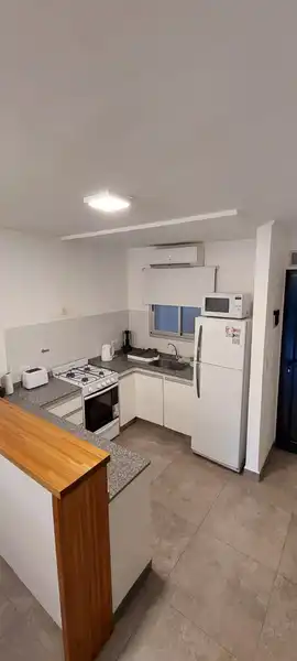 Cocina totalmente equipada, microondas, tostadora eléctrica, cafetera, heladera con freezer