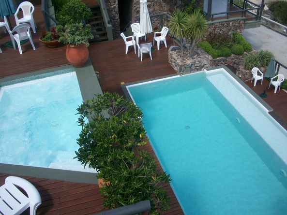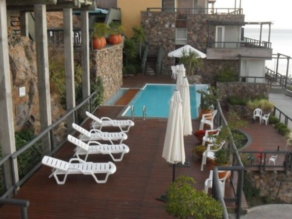 Ventanales todos hacia el mar y hacia el complejo de piscinas e hidromasajes.
