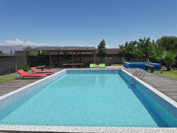 Espacio común del complejo: pileta, quincho, parrilla y baños.