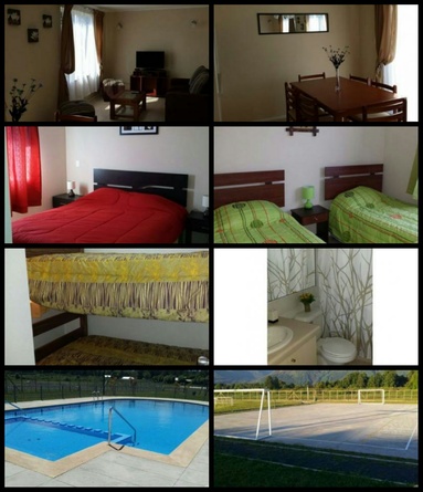 Arriendo casa completamente equipada para 6 persona, 3 dormitorios: 1 dormitorio con cama matrimonial, 1 dormitorio con 2 camas de 1 plaza y 1 dormitorio con 1 camarote, 3 baños. Ubicada en el condominio Peumayen II a pasos del centro de pucon (supermercado, playa, terminal turbus, casino) direcTV, parrilla, con estacionamiento particular y de visitas.