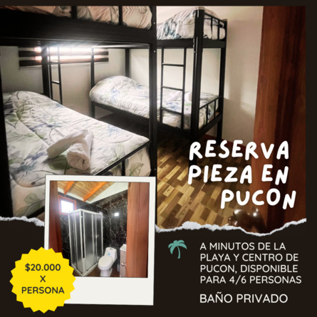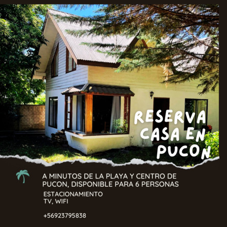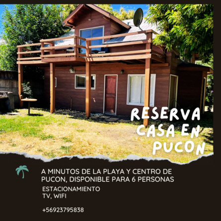 Se arrienda cabaña por día a 3 min del centro y playa de pucon , cercano y a supermercados y restaurantes! Para 6 personas ! Reserva con anticipación