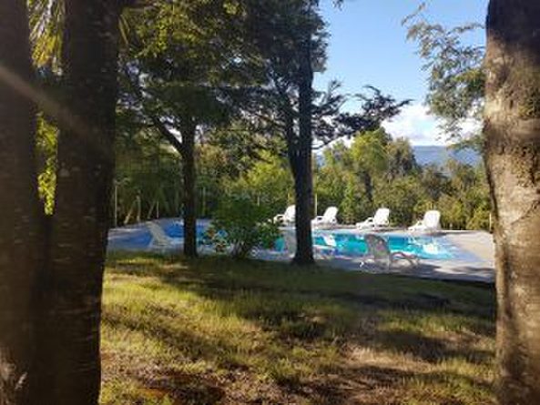 Disfrute su verano en Pucón con una piscina grande, columpios para los niños y parillas para asados.