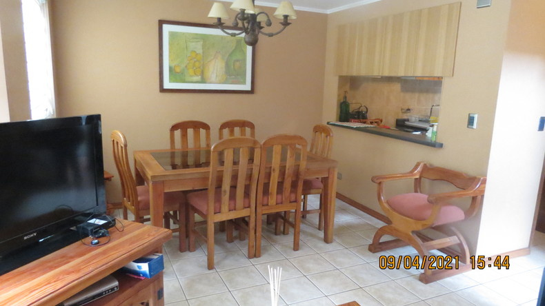 Es una casa de uso particular, con muebles acogedores hechos en madera nativa, muy amplia de 3 pisos, con 5 dormitorios y capacidad para 9 personas cómodas. Está ubicada a escasos 5 minutos del centro de Pucón, dentro del condominio Hacienda Pucón, en un entorno maravilloso, entre bosques nativos y a metros del río Trancura. El condominio cuenta con seguridad las 24 horas, amplios estacionamientos para 2 vehículos y piscinas para adultos y niños, inserta en un parque con hermosos jardines.