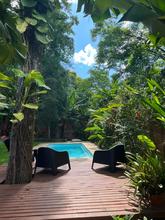 Hermosa casa con piscina y parque en zona de cabañas de Puerto Iguazú. Cuenta con parrilla y estacionamiento para dos vehículos. La capacidad máxima es para 6 personas.