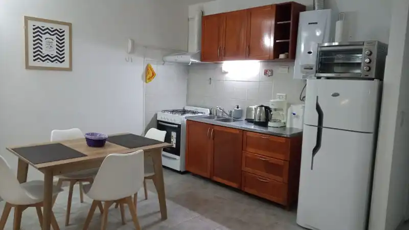 Dpto de 2 dorm, planta baja, quincho con parrilla, 1 baño, cocina completa y living comedor. Estacionamiento propio. A 4 cuadras de la playa, zona Sur Av. Roca y J.J. Paso.
