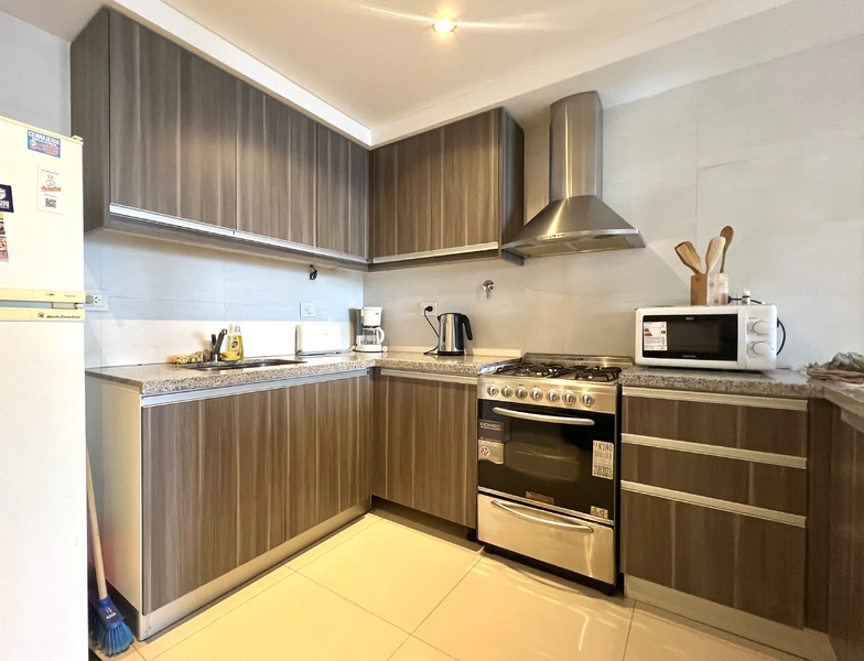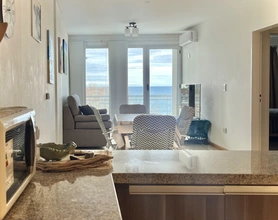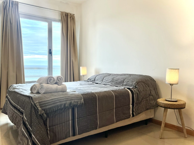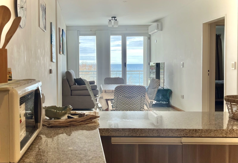 Departamento de dos ambientes, un dormitorio amplio con placard y vista al mar, cocina muy cómoda separada por una barra del comedor y living con balcón con vista al mar. Pleno centro de la ciudad.