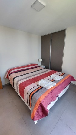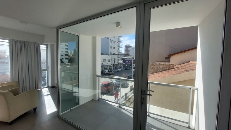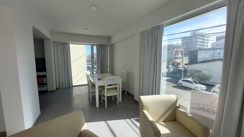 Hermoso departamento en el centro de la ciudad de Puerto madryn, a una cuadra del mar. Living, cocina comedor, habitación con cama matrimonial y balcón. Tv con wifi. Calefacción por losa radiante. Cochera incluída.