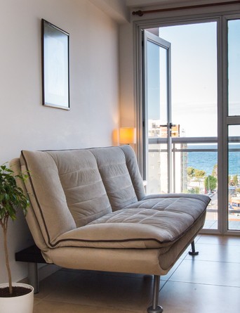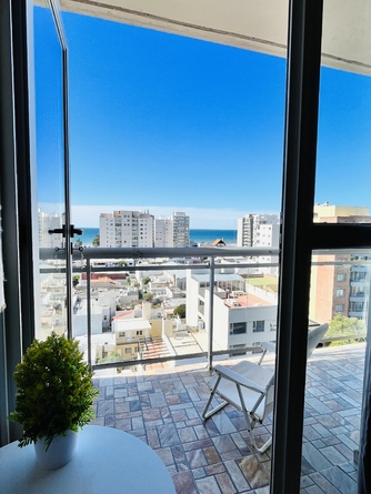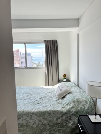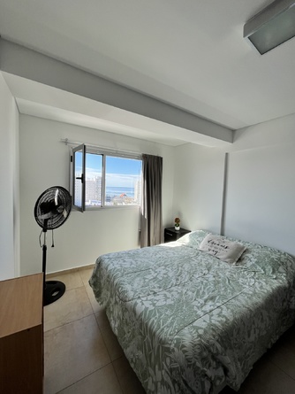 El departamento se encuentra ubicado en el centro de la ciudad, a escasos 200 metros de la playa. Cuenta con VISTA AL MAR tanto en la sala de estar como en la habitación, con orientación este.