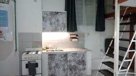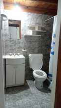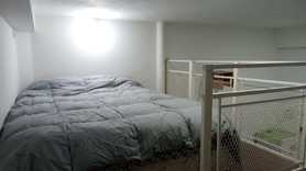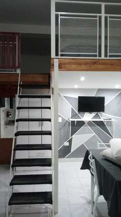 El hospedaje es tipo loft, con una cama matrimonial y una simple en un mismo piso, el lugar donde estan las camas es bajo, solo es para dormir. Esta equipada para 3 personas, tiene tv, cocina, mesa sillas, un placard, utensilios de cocina, etc