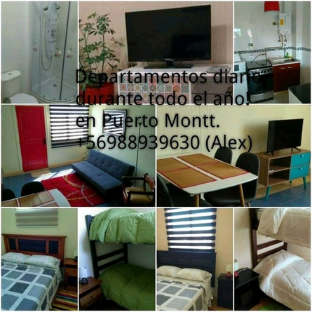 Departamento vacacional por días en la ciudad de Puerto Montt disponible desde el 1 de Septiembre hasta fines de Abril del 2025. El departamento cuenta con dos dormitorios, uno habilitado con una cama de dos plazas y el segundo dormitorio con una litera de una plaza.
