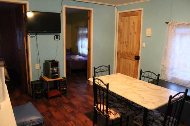 cabaña equipada con wifi,estacionamiento,un dormitorio matrimonial otro dormitorio con una litera para dos personas más.calefaccion,cocina equipada,baño....