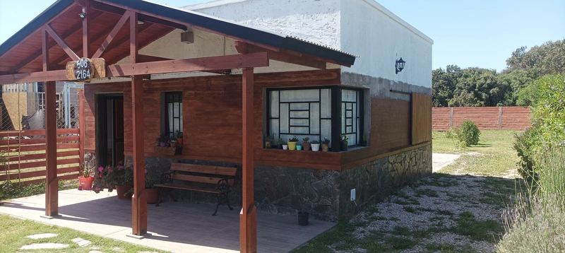 Cabaña ubicada a 200 mts del mar en Bahía de los Vientos, Quequen, Necochea, zona de descanzo, para max 4 personas, un dormitorio con somier 2 1/2 plazas y ropa de cama, estar con somier diván duo, cocina totalmente equipada, comedor y baño, calefaccionado... ubicada sobre amplio predio cerrado con entrada vehicular y parrilla