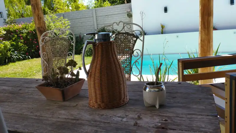 Cuenta con microondas, lavarropas automático, heladera con freezer, termotanque, tv led 42" con Directv, habitación privada con sommier, living comedor con sillon marinero y sommier de 1 plaza, parrillas y pileta de uso compartido con otras dos unidades, entrada para autos cerrada (no cubierta), baño con bañera, patio interno y externo, ropa de cama y tohallones, calefacción.