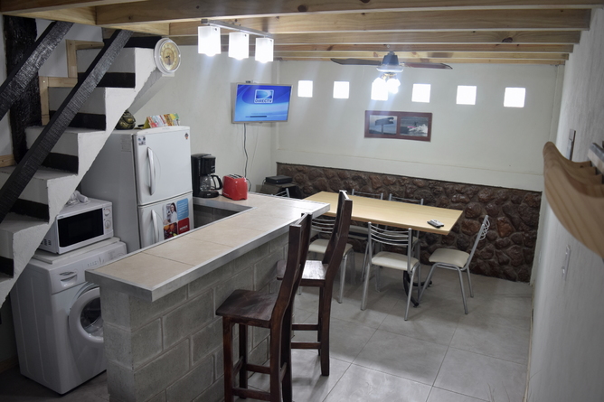 Las comodidades incluidas en cada departamento son las siguientes: microondas, cocina, heladera con freezer, lavarropas, ventiladores y conexión wifi.