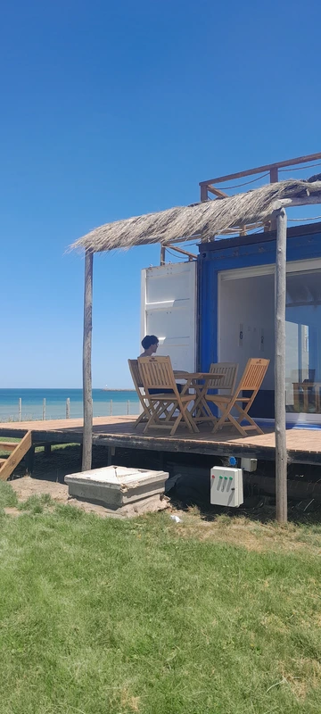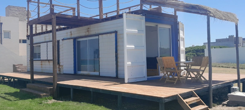 container para 4 personas . living cocina cafetera cocina heladera microondas. pava electrica. mesa sillas dos camas pequeñas. habitacion matrimonial excelente vista al mar tv cable wifi. en primera linea de playa quequen. deck en planta baja y deck total del techo a los 4 vientos amplio terreno apto para deportes futbol voley. sector fogon con disco parrilla. ideal para amantes de la playa quequen...... disponible a partir del 23 de enero