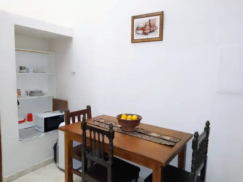 El mismo cuenta con tres ambientes, uno con pequeño comedor y cocina , una habitación con baño y otra habitación.