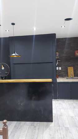 Cocina muy amplia con muebles bajo y sobre mesada, e isla.