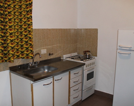 La cocina a gas natural, heladera, vajilla y utensillos para seis personas. Calefacción.