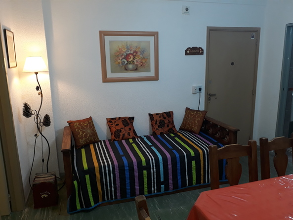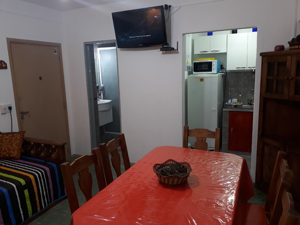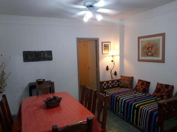 COMEDOR CON VISTA LATERAL AL MAR, VENTILADOR DE TECHO, TV LED DIRECT TV PRE PAGO, DIVAN CAMA APTO PARA 2 PERSONAS. , UN DORMITORIO CON 2 CAMAS INDIVIDUALES, AMPLIO PACARD,