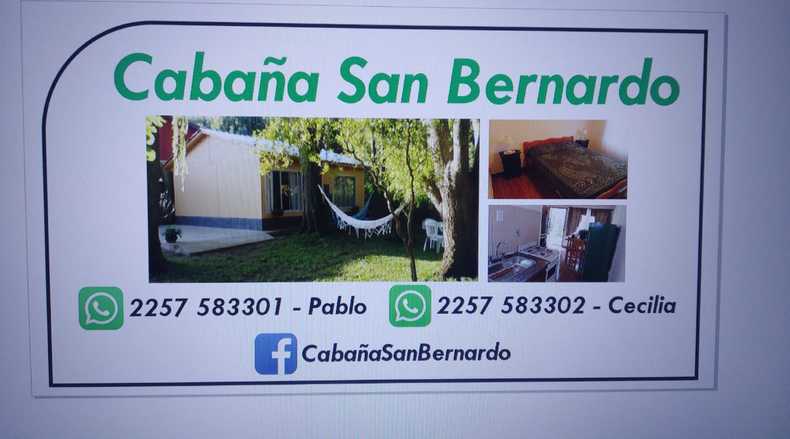 Cabaña San Bernardo un lugar familiar para descanso... con verde y todo lo que necesitas para descansar... todos los servicios... Agua corriente ... Gas natural ... Tv Cable... WiFi... Alarma ... Parrilla... Estacionamiento... y lo que necesites para pasarla bien ... Contesto todo por Whatsapp únicamente!!!