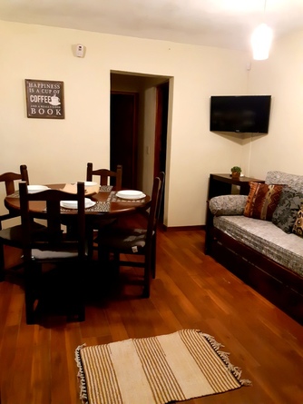 Se Alquila departamento para 4 personas con espacio arbolado, patio con deck y Parrilla, Los servicios que posee son: gas natural, tv con cable y DVD, internet , WI FI. cocina y vajilla completa, diván cama con cama carrito para dos personas, habitación con cama matrimonial, calefactores tiro balanceado en sus ambientes, Heladera con freezer, Termotanque alto rendimiento 100 lt, Seguridad provista con cámaras exterior monitoreadas . Alarma interna por sensor de movimiento. Estacionamiento dentro del predio.