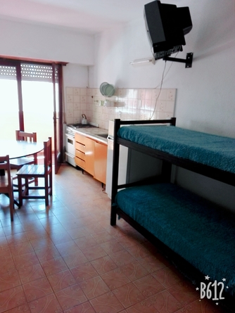 Dispuesto de :Una habitacion matrimonial y camas cuchetas en living-comedor. Balcón al exterior. Muy luminosos. 3 pisos , 6 deptos por piso, acceso por escalera. Ropa de cama deben traerse, ventilador si lo requiere se debe solicitar.
