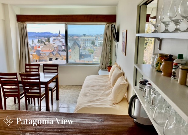 Patagonia View es un espacioso departamento con dos ambientes amplios con vista al lago, cocina equipada y dos televisores con conexión a Netflix, Disney+, canales de cable y Wi-Fi (fibra, 500Mb). Se puede ver en este video: http://surl.li/uxrpou