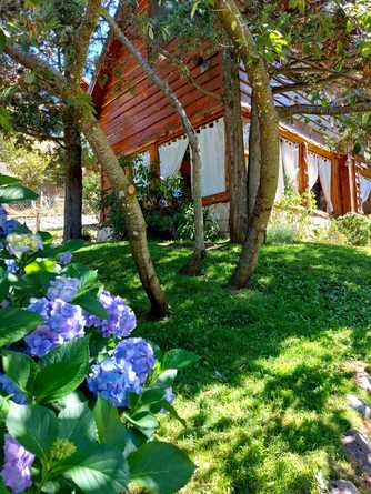 Cálida cabaña para una tranquila y agradable estadía. Cercana al centro. Acceso por asfalto. Construída con troncos, madera y piedra. Dos plantas. PB: hall entrada, living, cocina-comedor. PA: dos dormitorios separados entre si por el baño completo. Muy buena calefacción. Wifi. Equipada 4 personas).Ropa blanca incluida. Estacionamiento dentro del predio. Parque. ESTADIA MINIMA 3 NOCHES