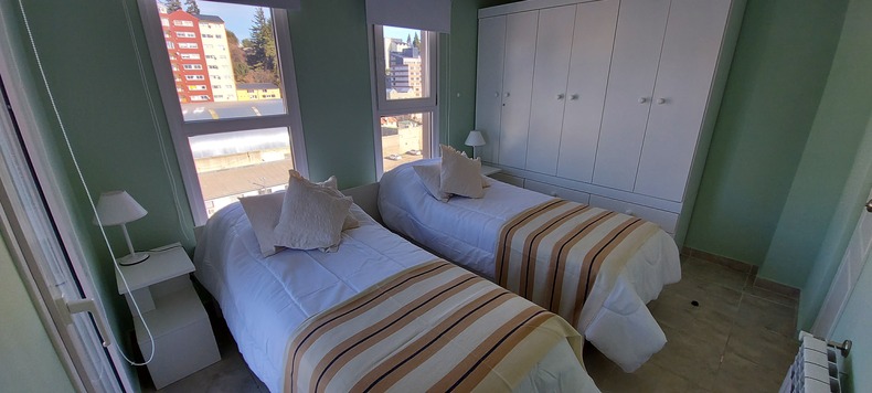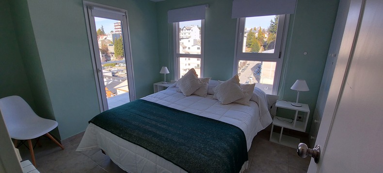Cómodo, cálido y luminoso. Con hermoso balcón con vista al lago, ciudad y montañas.