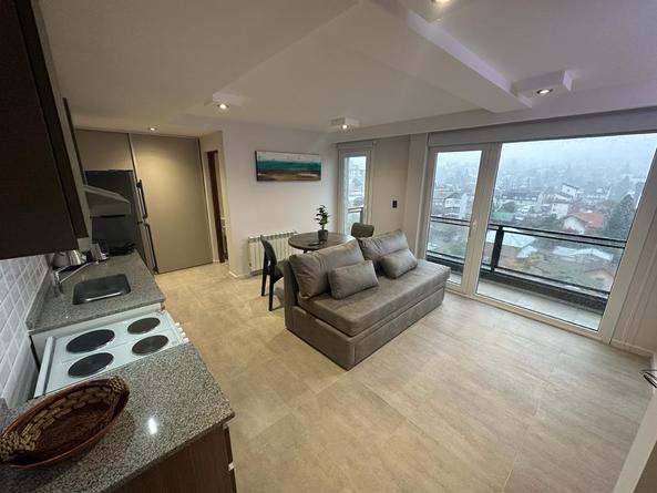 El Estudio se ubica en el piso 7° del edificio, ¡cuenta con Sofá Cama – Comedor – Smart Tv 65” – Cocina – Baño completo – balcón y lo mejor! una terraza amplia de 22m2, privada y exclusiva con parrilla y una de las mejores vistas panorámicas al lago y cerros de la ciudad.