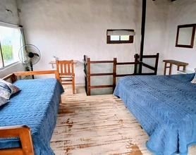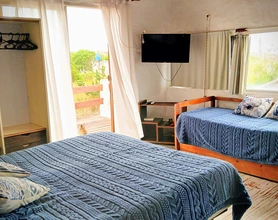 En planta alta la habitación de 4 x 4 mt con una ventana gigante con vista. Hay una cama matrimonial y 1 cama chica que tiene una cama carrito abajo, duermen hasta 4 personas. Hay internet con wifi y TV smart wifi (no cable) Tiene un balcón terraza de 4 x 2 mt con una vista lindísima.