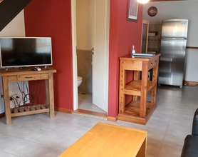 En planta baja cuenta con un amplio estar comedor con sofá; cocina totalmente equipada con cocina con horno, heladera con freezer, tostadora y pava eléctrica, microondas y vajilla completa.
