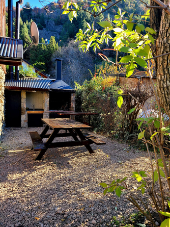 El Jardín es amplio, cuenta con varias especies de árboles nativos y tiene una hermosa zona de parrilla, ideal para cocinar al aire libre y disfrutar de la vistas al cerro Curruhuinca.