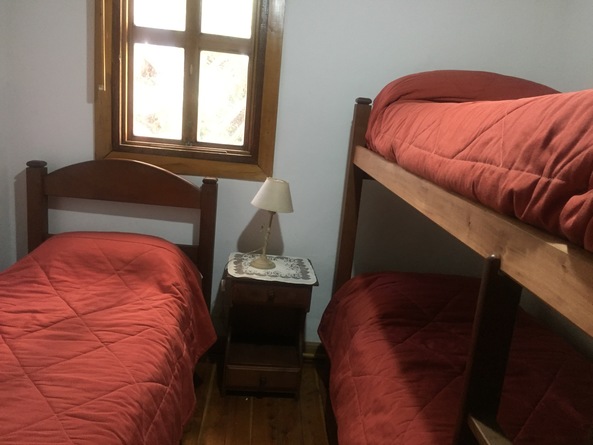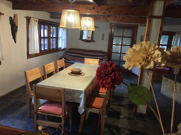 villa huepil es una cabaña de montaña , se encuentra en la ladera de un cerro, rodeada de frondosa vegetacion,en una calle cerrada a 150 metros de la ruta 40, en el km 2217, a 4 km del centro civico,en zona urbana y comercial. calefaccion a gas y a leña, estacionamiento,parque, parrilla. Ropa blanca, vajilla completa,.