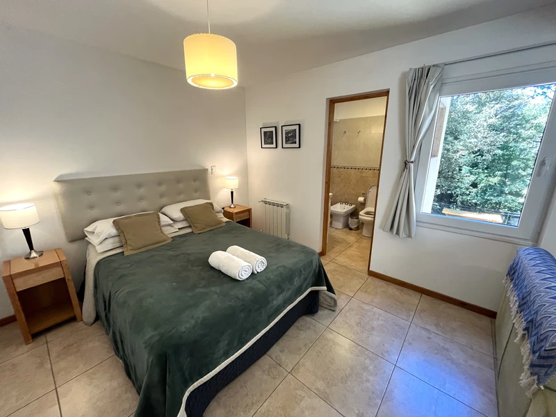 El espacio cuenta con una cómoda cama matrimonial, equipada con sábanas y toallas de excelente calidad, además de amenities de baño (shampoo, jabón y secador de pelo). También ofrece WiFi gratuito y Smart TV con acceso a Netflix, para relajarte después de un día de paseo.
