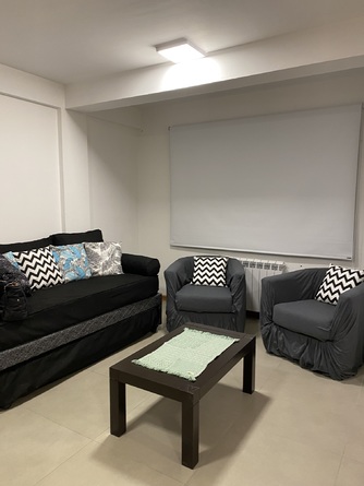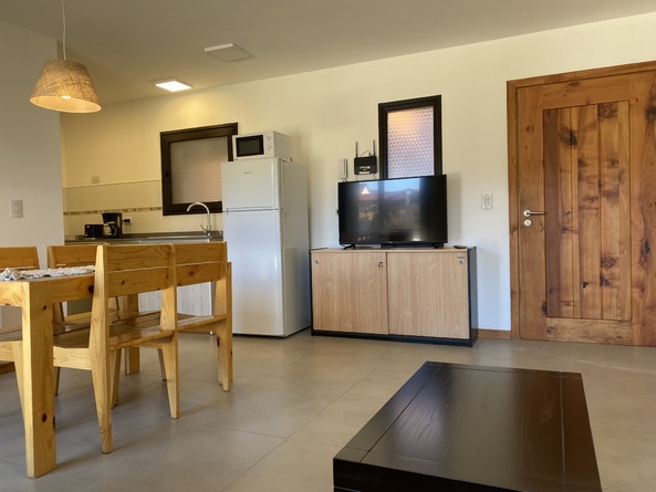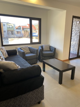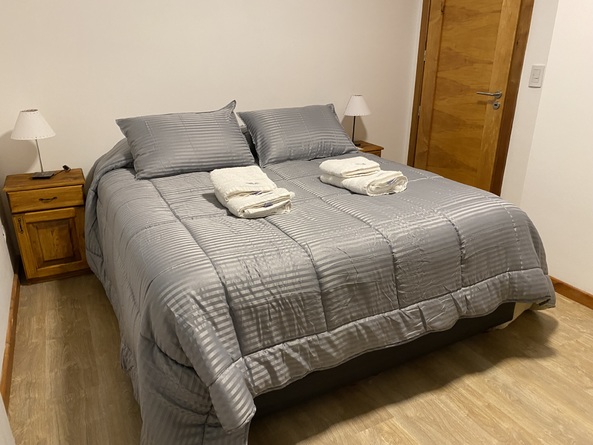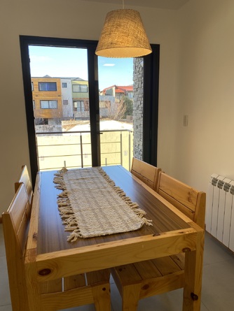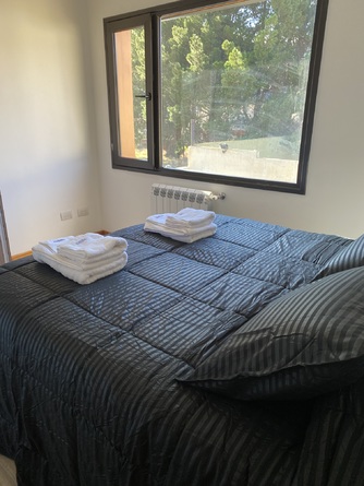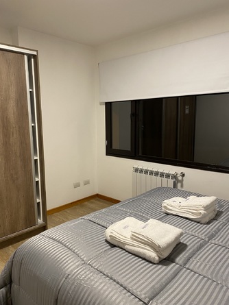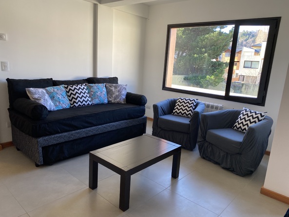 Hermoso departamento en el centro de San Martín de los Andes. Ubicado en el 1er piso. Edificio moderno, nuevo, con ascensor. Totalmente equipado para 4 personas. Un Dormitorio con cama matrimonial grande (1,60m) y placard. Living- comedor y cocina integrados. En el living Sommier- Divan cama con una otra cama carro debajo. Un baño completo con bañera. Ropa de cama y toallas. Secador de cabello. Vajilla completa. Microondas. Wifi gratis por fibra óptica. Smart TV. Calefacción central por radiadores con termostato individual en cada departamento. Balcón terraza.