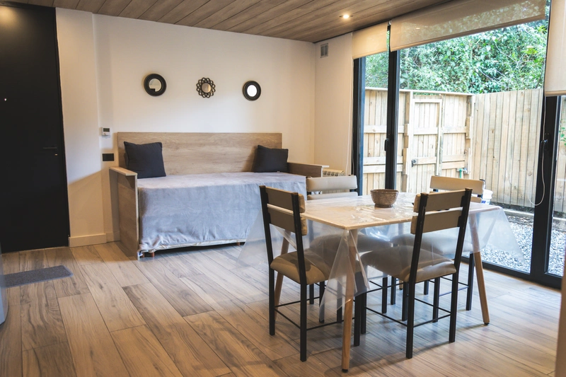 El espacio está equipado con todo lo necesario para una estadía sin preocupaciones: cocina completa, Wi-Fi, TV, ropa de cama incluida y un ambiente cálido y luminoso. Su ubicación es inmejorable: frente al arroyo Pocahullo y a solo tres cuadras de la Av. San Martín, lo que permite moverse a pie por la ciudad y disfrutar de sus principales atractivos, restaurantes y comercios.