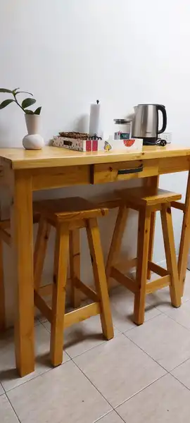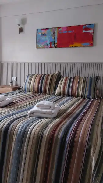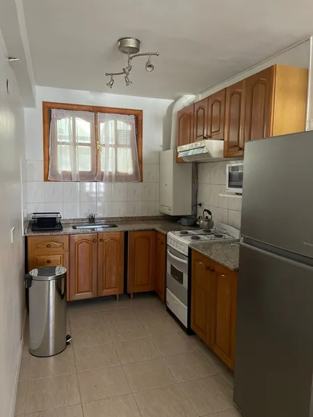 Cocina integrada totalmente equipada: vajilla, heladera con frezzer, microondas, cocina y horno a gas, pava electrica, tostadora, etc.