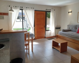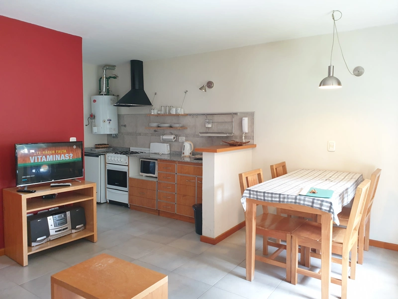El departamento es de dos ambientes, se encuentra en plata baja, y cuenta con patio y parrilla. Cuenta con estar comedor con sofá cama y carricama ambos colchón de sommier; cocina totalmente equipada con cocina con horno, heladera bajo mesada, tostadora y pava eléctrica, microondas y vajilla completa, calefacción a gas por calefactor tiro balanceado; un dormitorio con cama matrimonial y placard, calefacción a gas por calefactor tiro balanceado; baño completo con bañera. Posee además Smart tv con direc tv, equipo de audio, WIFI, ropa blanca y secador de cabello.
