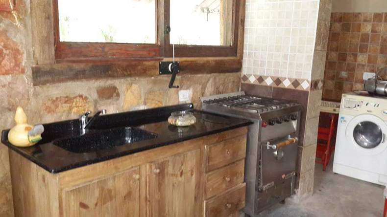 EL RANCHO es una casona de campo artesanal de piedra pensada en cada detalle y en la gran comodidad de quienes nos elijan, con espacios amplios y acogedores cuenta con 3 habitaciones, 2 en suites, cocina, comedor, living, galería-cochera, baño principal, aire acondicionado, y dispone de 8 plazas. … todo sobre planta baja…