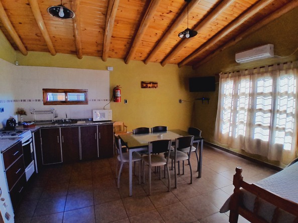 Contamos con dos cabañas, con una capacidad de sieste y seis personas. Ambas cuentan con servicio de DirecTV, WiFi, ropa de cama, aire acondicionado, calefacción, cochera, churrasquera, pileta, alarma, cocina equipada.
