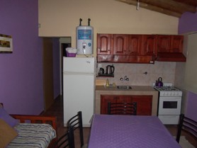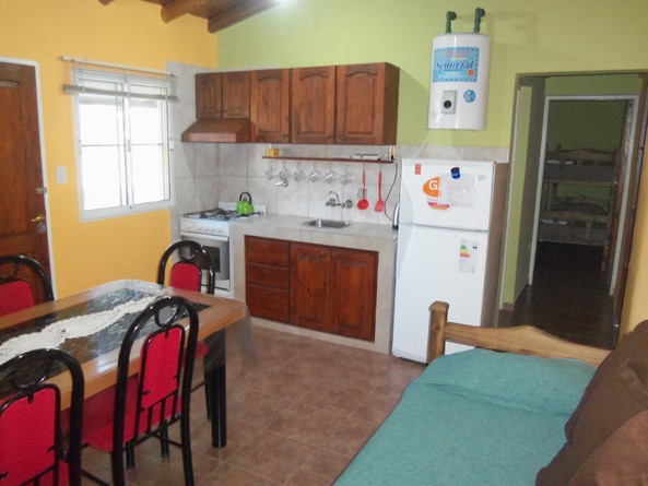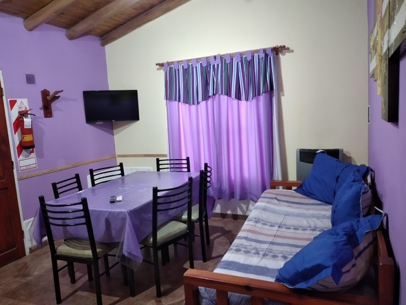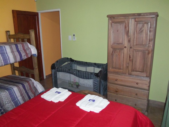 Cabañas de una habitación con cama matrimonial y cucheta. Cama con carricama en el comedor. Capacidad máxima 6 personas, totalmente equipadas. Incluye cochera techada interna, Internet WIFI gratuito, Canales de TV, Aire Acondicionado en habitación, Calefacción con salida al exterior, frazadas, placard, almohadas.