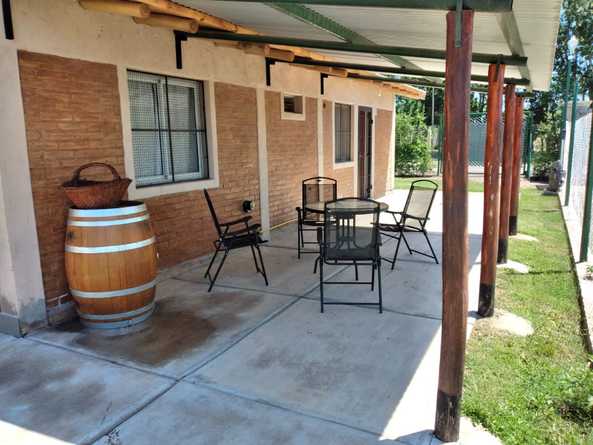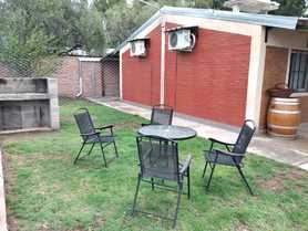 Patio con Juego de Jardín, Parrilla para asado, y elementos del asador, baño propio con ducha caliente, secador de pelo, agua potable para consumo, no posee pileta.