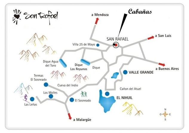 Ubicado en zona de cabañas, un lugar tranquilo, atendido por sus dueños. A 5 minutos del Centro de San Rafael, los restaurantes y el Aeropuerto. Con acceso rápido y asfaltado a los principales centros turísticos.