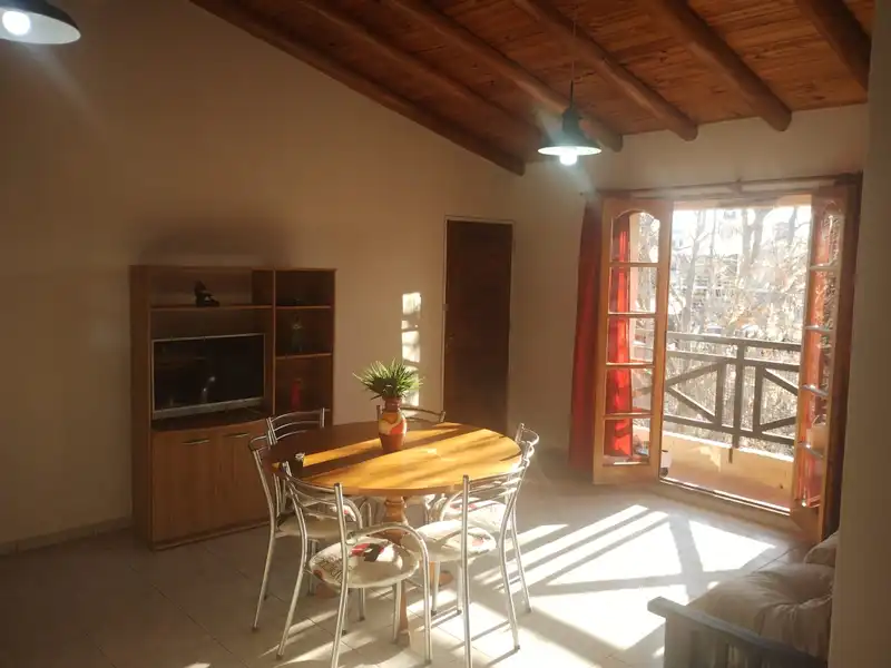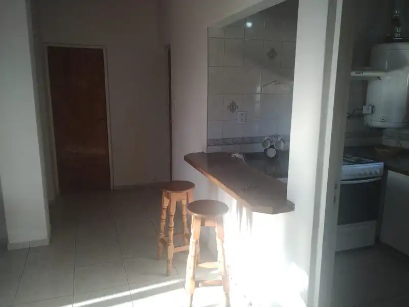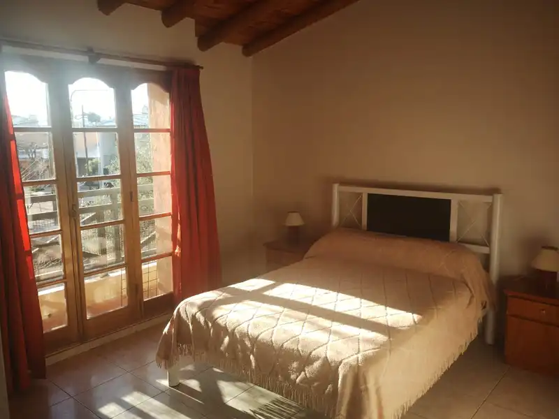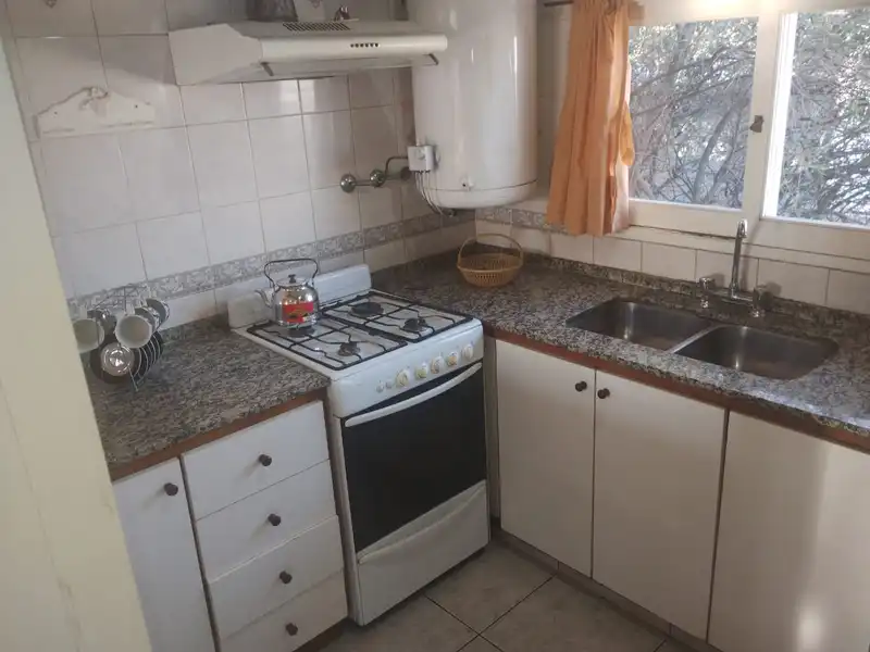 dispone de 2 dormitorios, uno con cama de 2 plazas y placar grande, otro con cucheta y cama individual y ropa de cama; cocina completa con utensilios, cocina a gas natural con horno, heladera con freezer y lavarropas automático: living comedor con futón barra desayunadora, mesa y sillas, smart tv pantalla plana, wifi; con calefacción; estacionamiento techado; se encuentra en planta alta con vistas y balcón grande a la calle. No posee patio ni churrasquera ni aire acondicionado