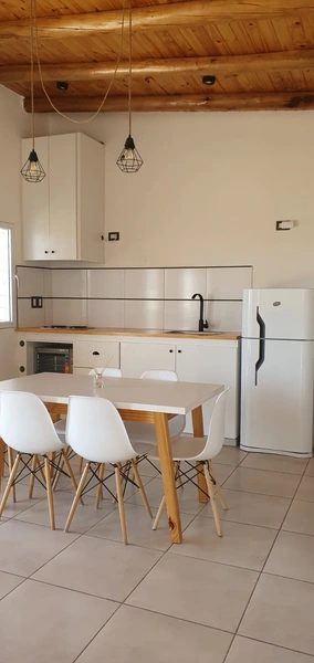 Cocina equipada (horno eléctrico, anafe, pava electrica, heladera grande, tostadora, vajilla)