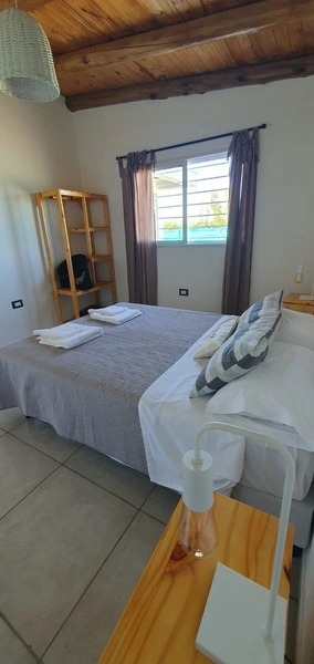 Habitación principal: con sommier 2 plazas y media y estante para ropa.